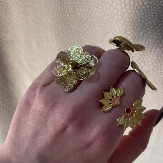 Bague décorée de deux fleurs stylisées.