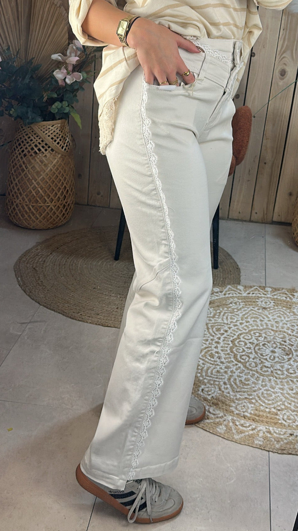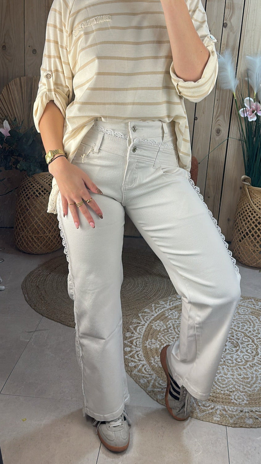 Jean écru et dentelle