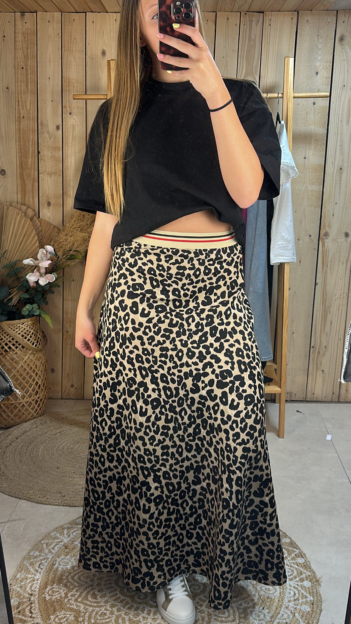 Affirmez votre style avec cette jupe longue au motif léopard intemporel. Sa coupe fluide et évasée vous assure une allure féminine, tandis que sa taille élastiquée à rayures sportives apporte une touche moderne et décontractée. C'est la pièce idéale pour mixer les styles : portez-la avec un t-shirt basique pour un look "street-chic" irrésistible.